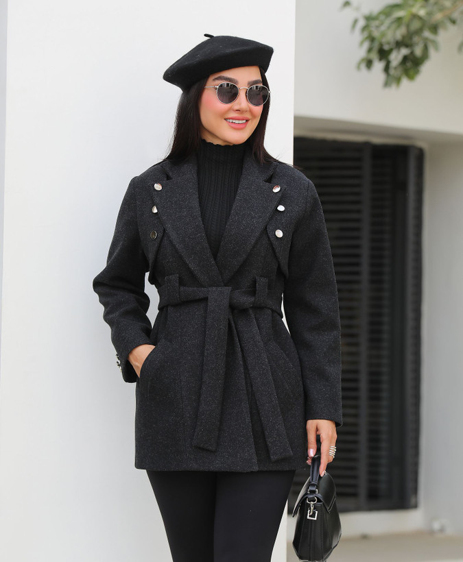 یه پالتوی کوتاه دخترونه که فروشش تو مغازه عالی بوده.بالای کار طرح ژیله داره که خوشگلی فوقالعاده ای به استایل میده.برعکس فوارهای کوبیده این مدل بسیار سبکه و رو تن کاملا میشینه